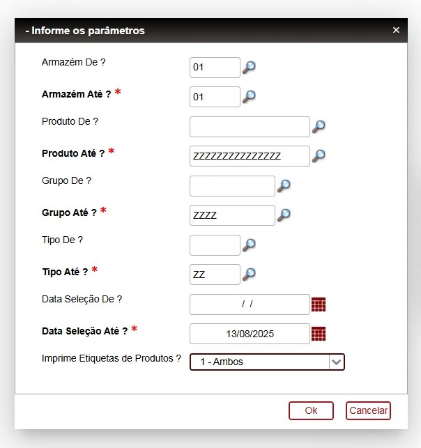 Pensando nisso, montamos uma função que usa FWMSPrinter, ao abrir é exibido uma tela de parâmetros:
