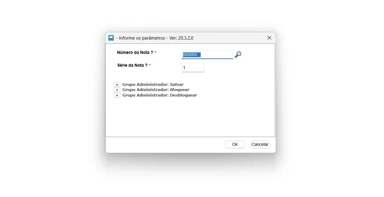 Pensando nisso, foi criado essa customização, onde após excluir a NF e acessar a customização, é exibido uma tela de parâmetros para informar o documento e a série: